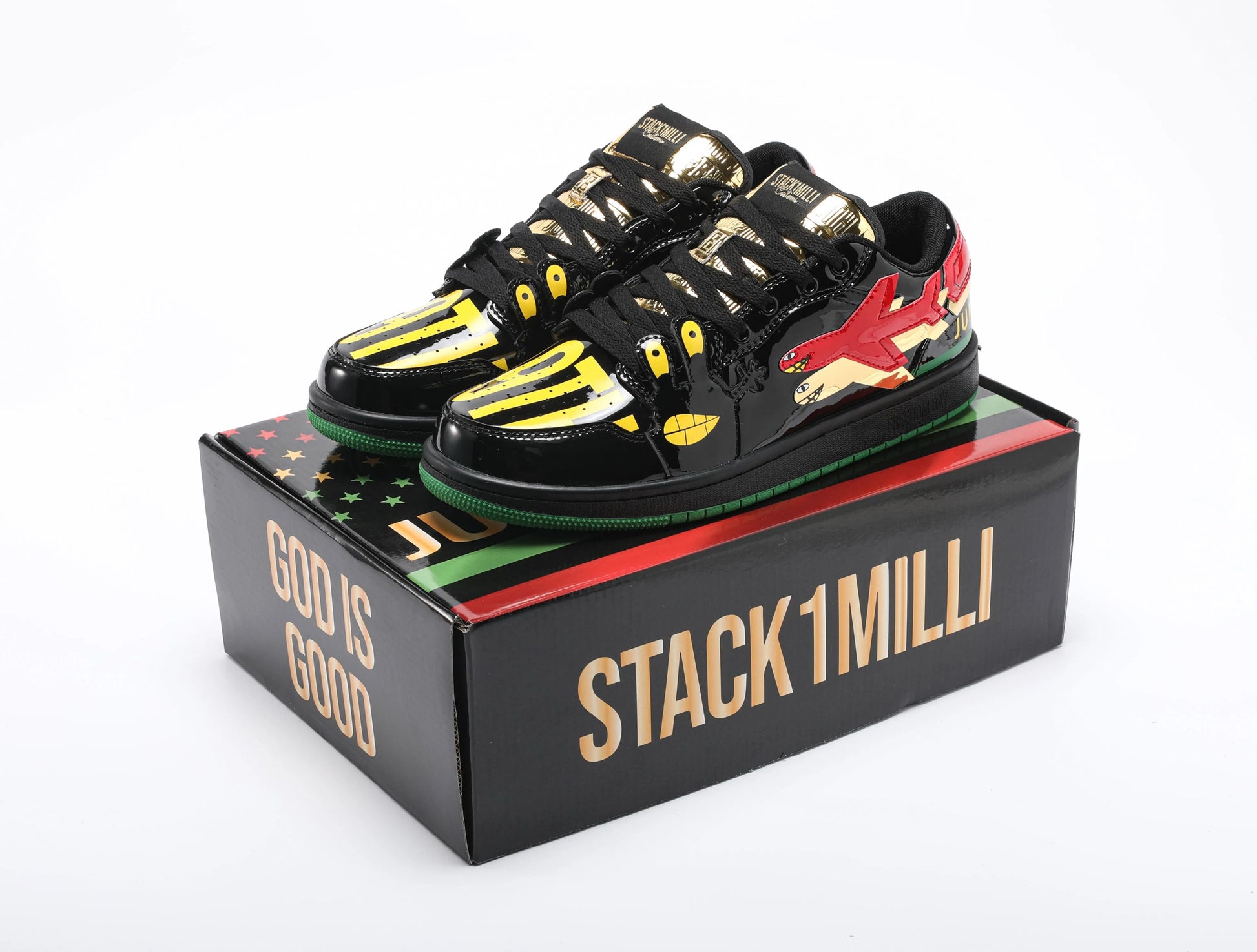 • Detachable Tongue (One Gold Juneteenth Embossed & One with Juneteenth Logo)